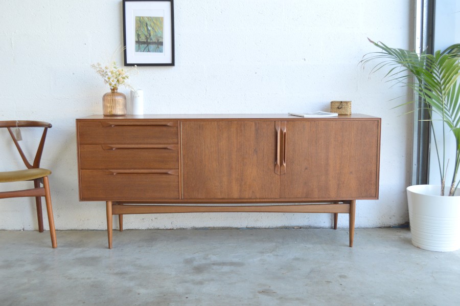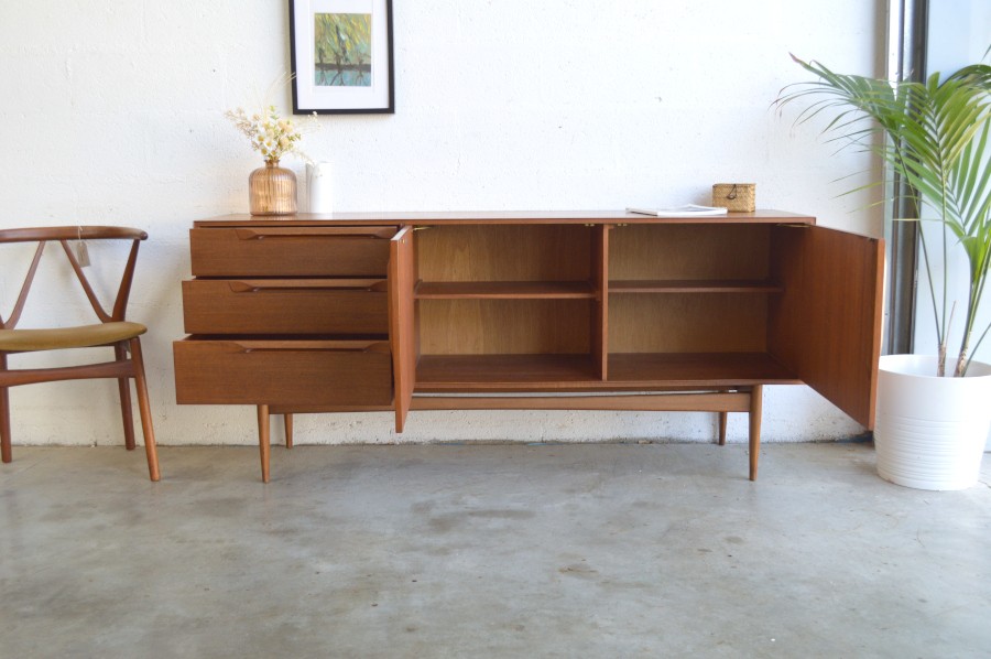 2 500€Enfilade en teck aux lignes très épurées, dessinée par le designer Ib Kofod-Larsen entre 1952 & 1965 pour l’éditeur anglais G-plan.