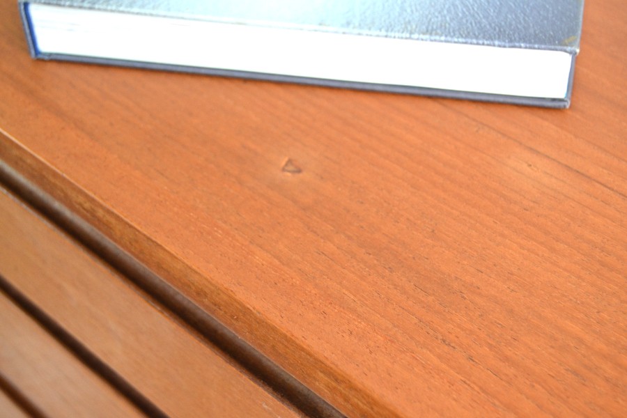 Cependant, quelques traces du passées sont indélébiles. A savoir, un accro sur le plateau ainsi qu’une petite auréole facilement » camouflable » avec une jolie déco, livre… ( cf photos)