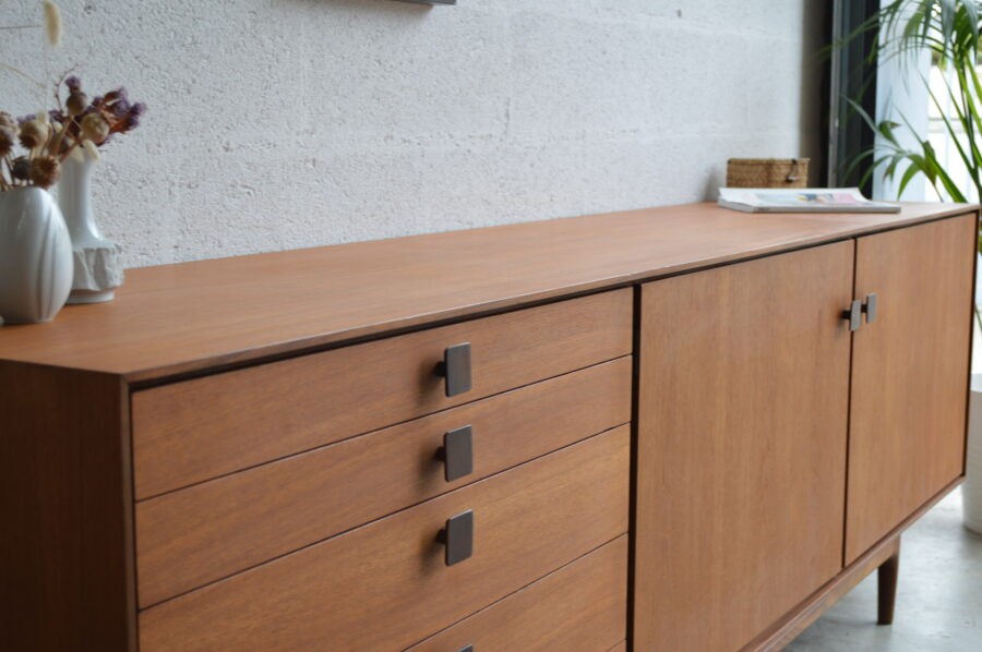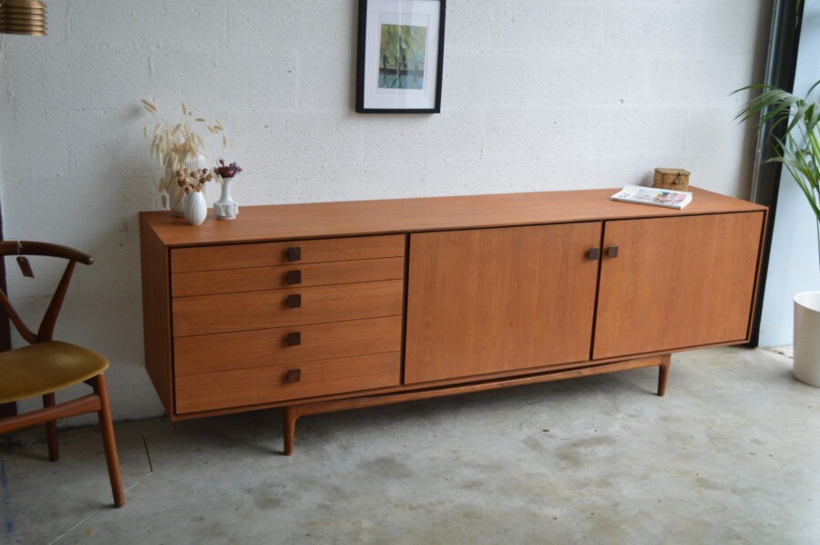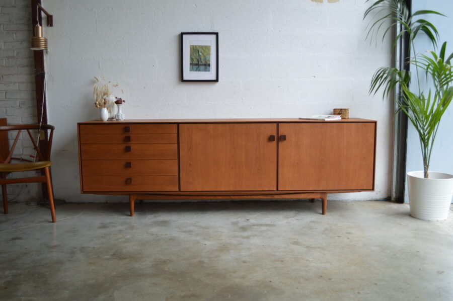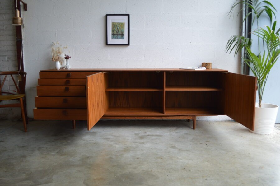 Enfilade en teck aux lignes très épurées, dessinée par le designer Ib Kofod-Larsen entre 1952 & 1965 pour l’éditeur anglais G-plan.