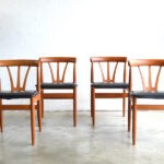 Série de quatre chaises en teck, assises en skaï en parfait état!